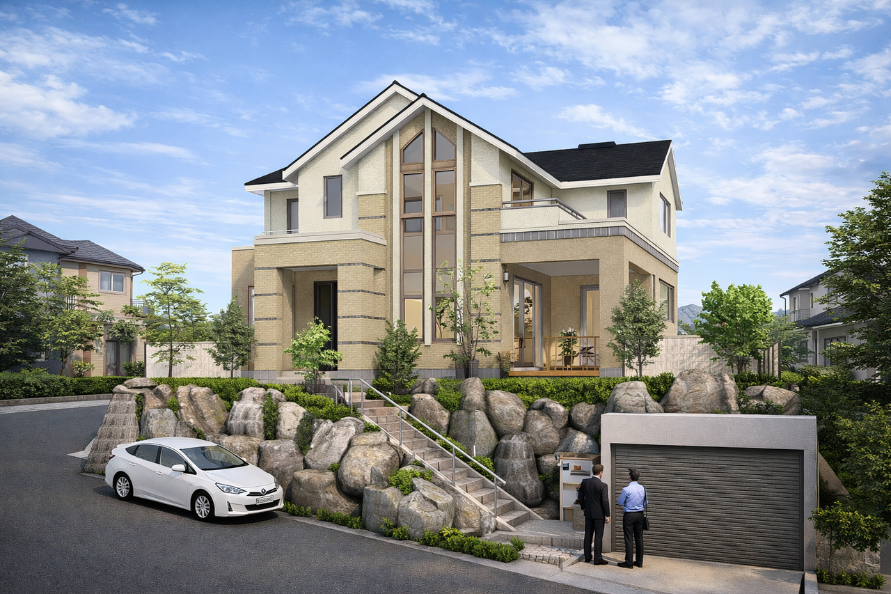 当社で作成したベースプランをもとに、AIがリアルな外観・内観・外構表現へ。