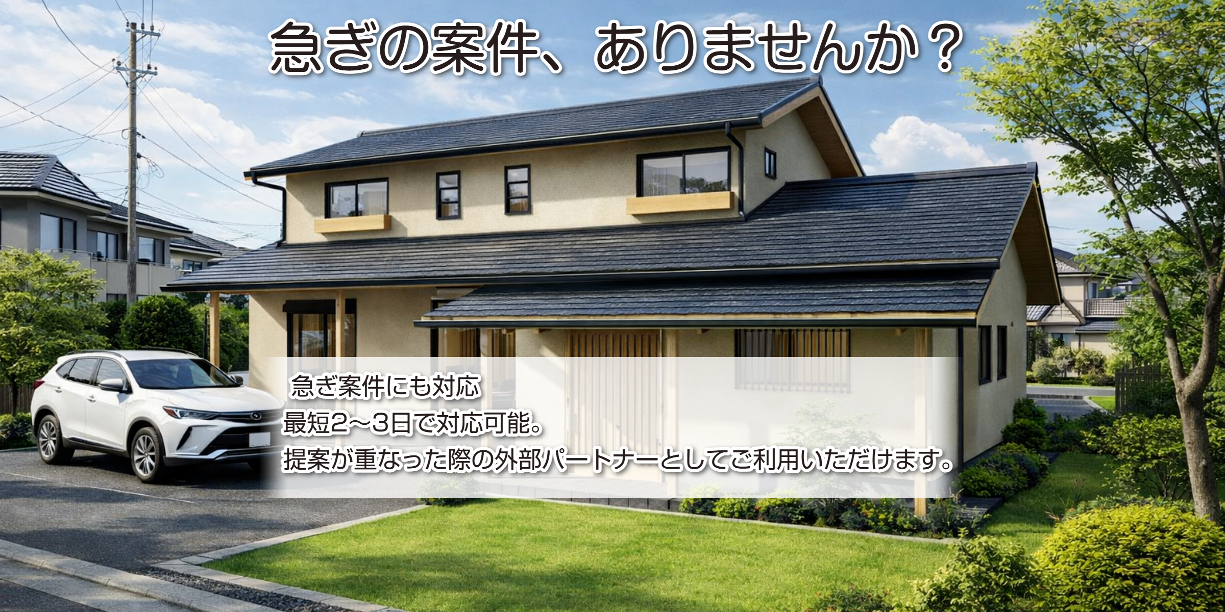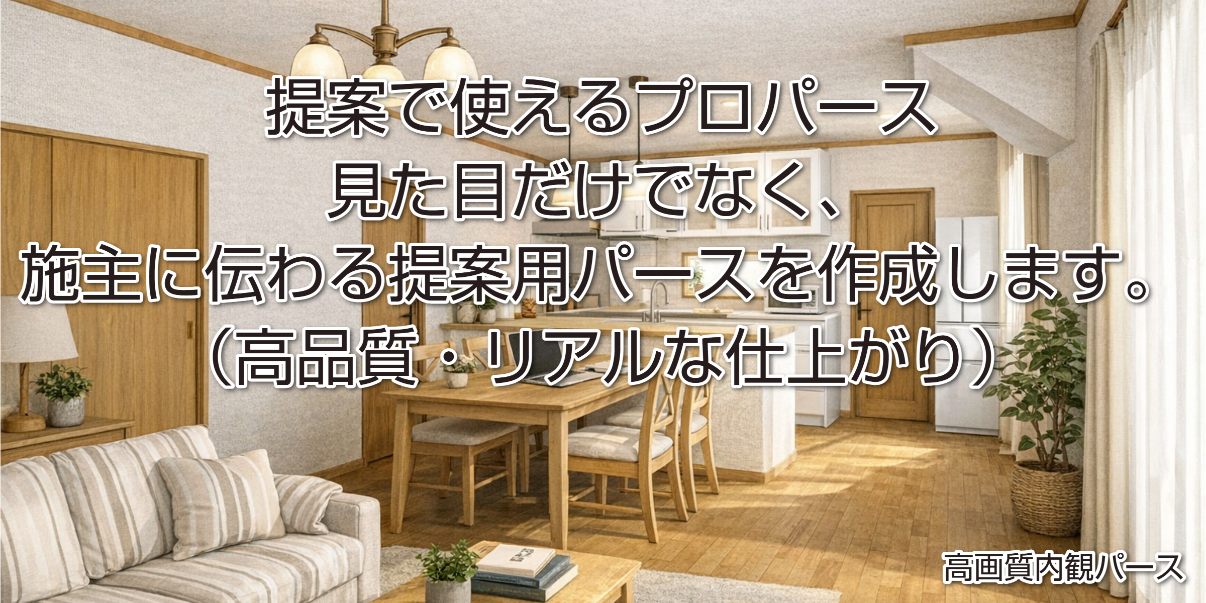 工務店様の提案スピードを落とさず、施主様に伝わるパースをスピーディーにご提供します。