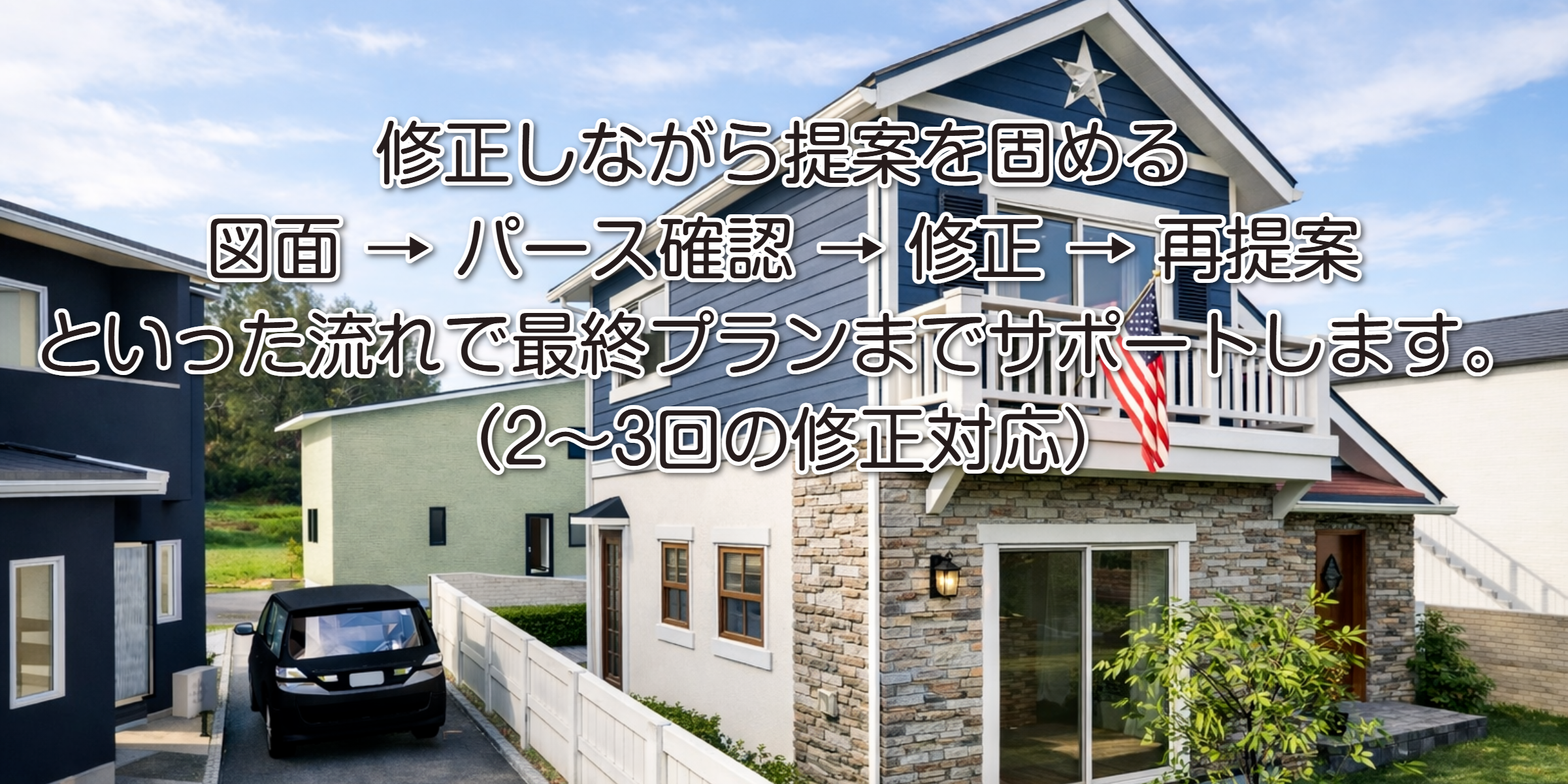 提案途中で外観や内装、外構の変更が出た際にも、都度コストや日数が発生しやすく、スピード感のある打合せには向かないケースもあります。