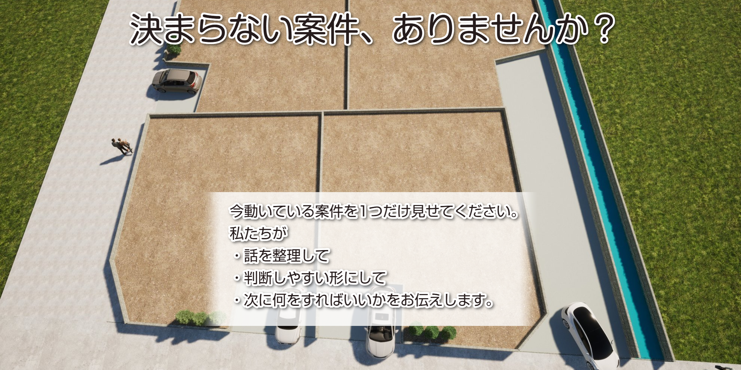 今提案中の物件が契約するまでお手伝いします。契約しなければ