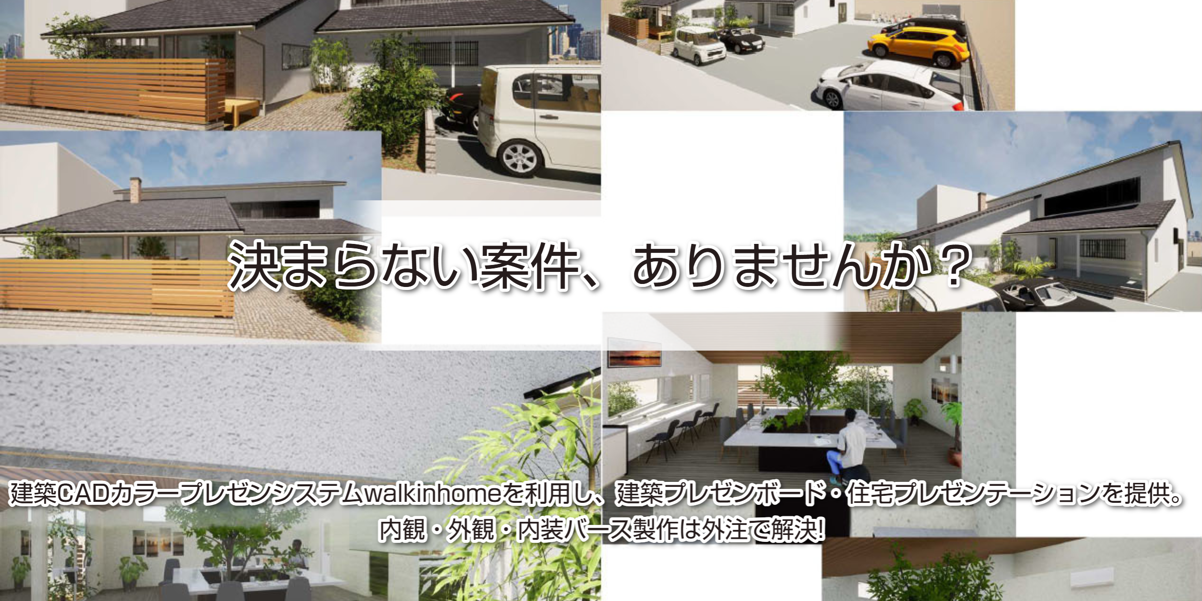 ウォークインホーム 最新バージョンで作成 walkinhome建築パース・CG・図面代行サービス提案用図面是非お試し下さい。全国対応サービスCGパース作成 図面の作成工務店・建設会社様 ハウスメーカー様向け図面作成支援お忙しい工務店様の社員のように図面作成するサービスになります。働き方改革にお役に立ちます!ウォークインホーム 最新バージョンで作成 walkinhome18ウォークインホームお持ちのハウスメーカ様お気軽ご相談下さい。ハウスメーカー様実積あります。導入前にお試しプレゼンができますのでご安心下さい。