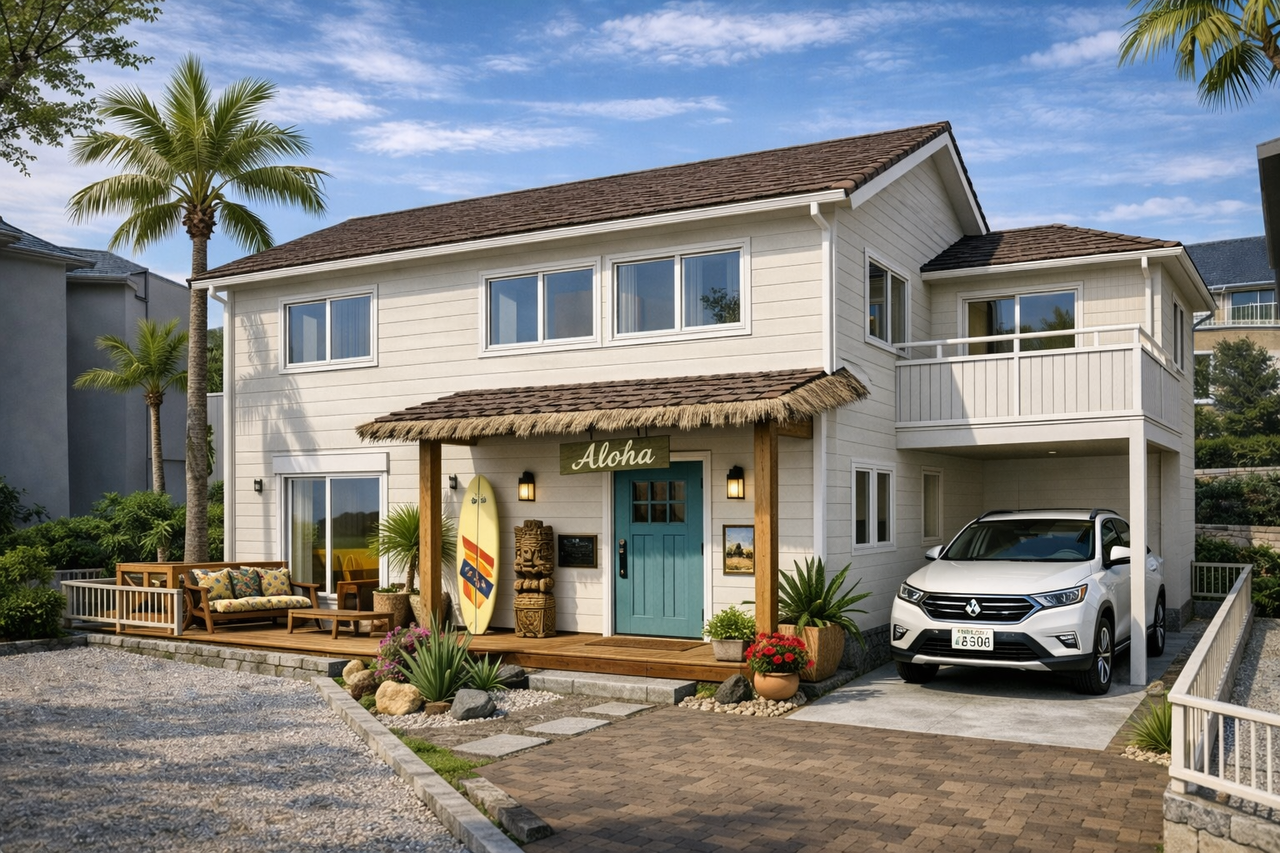 当社で作成したベースプランをもとに、AIが外観・内観・外構・インテリアまでリアルに表現。