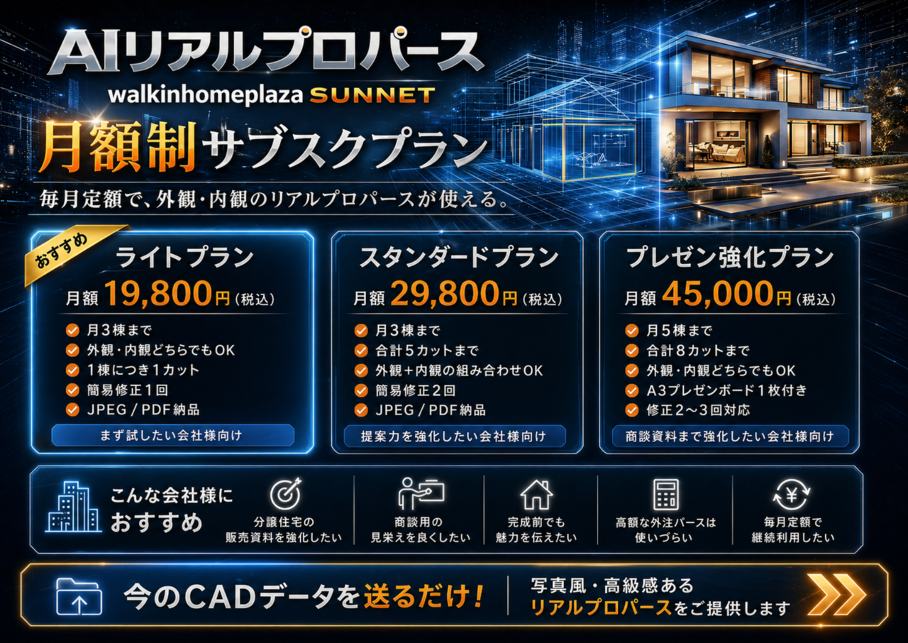 これが、従来のCADパースや外注高画質パースとの大きな違いです。