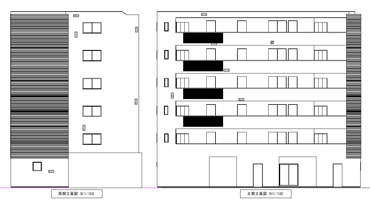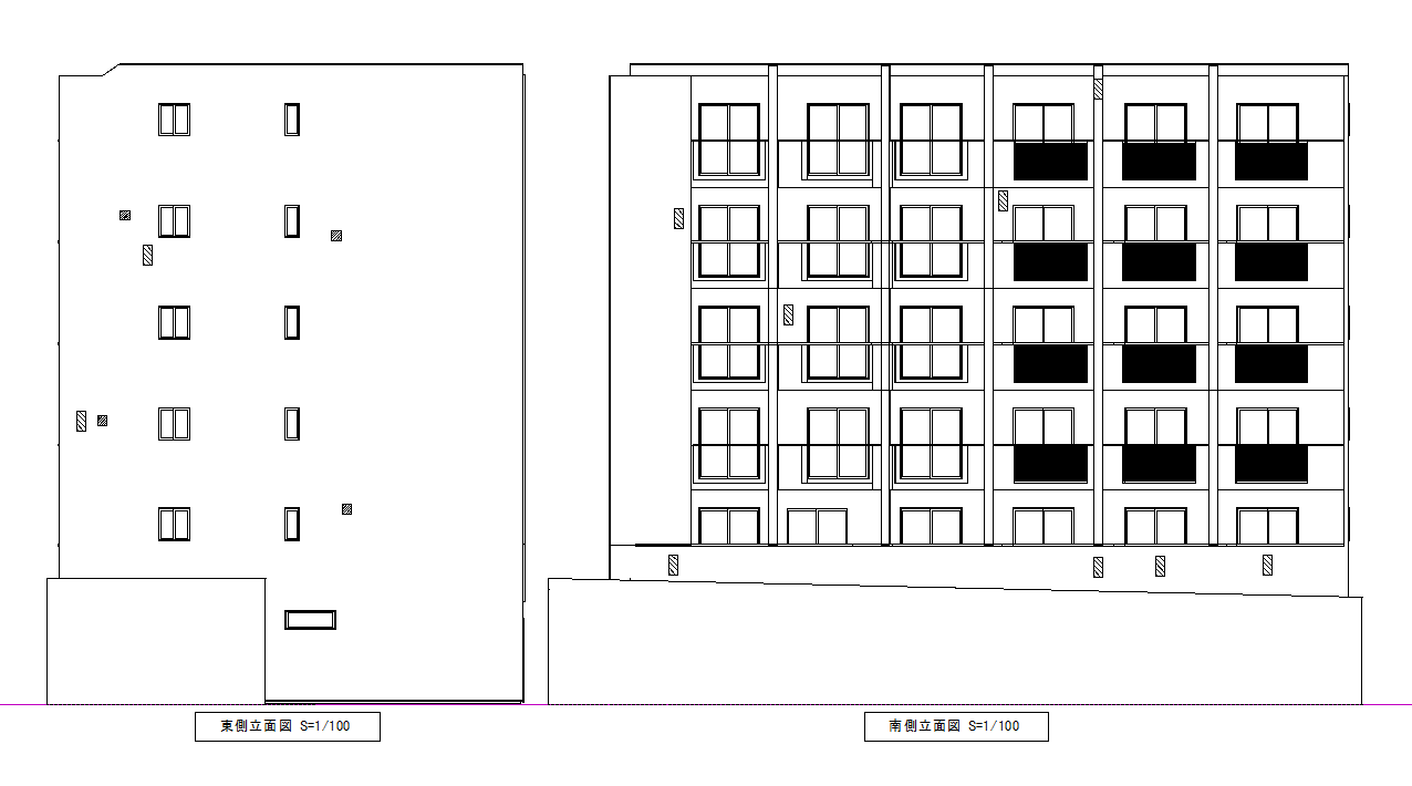図面をもとに、タイル外壁の質感まで再現した写真リアル立面パースです。