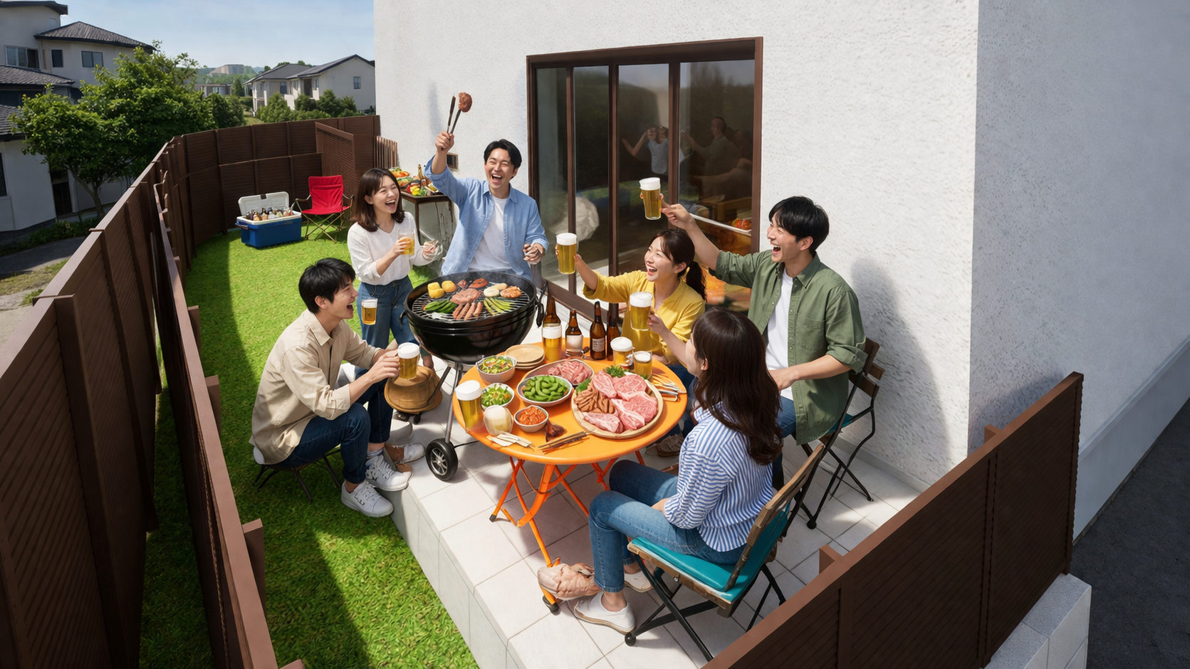 プライバシーを確保しながら、家族やご友人と楽しめる半プライベートなアウトドア空間