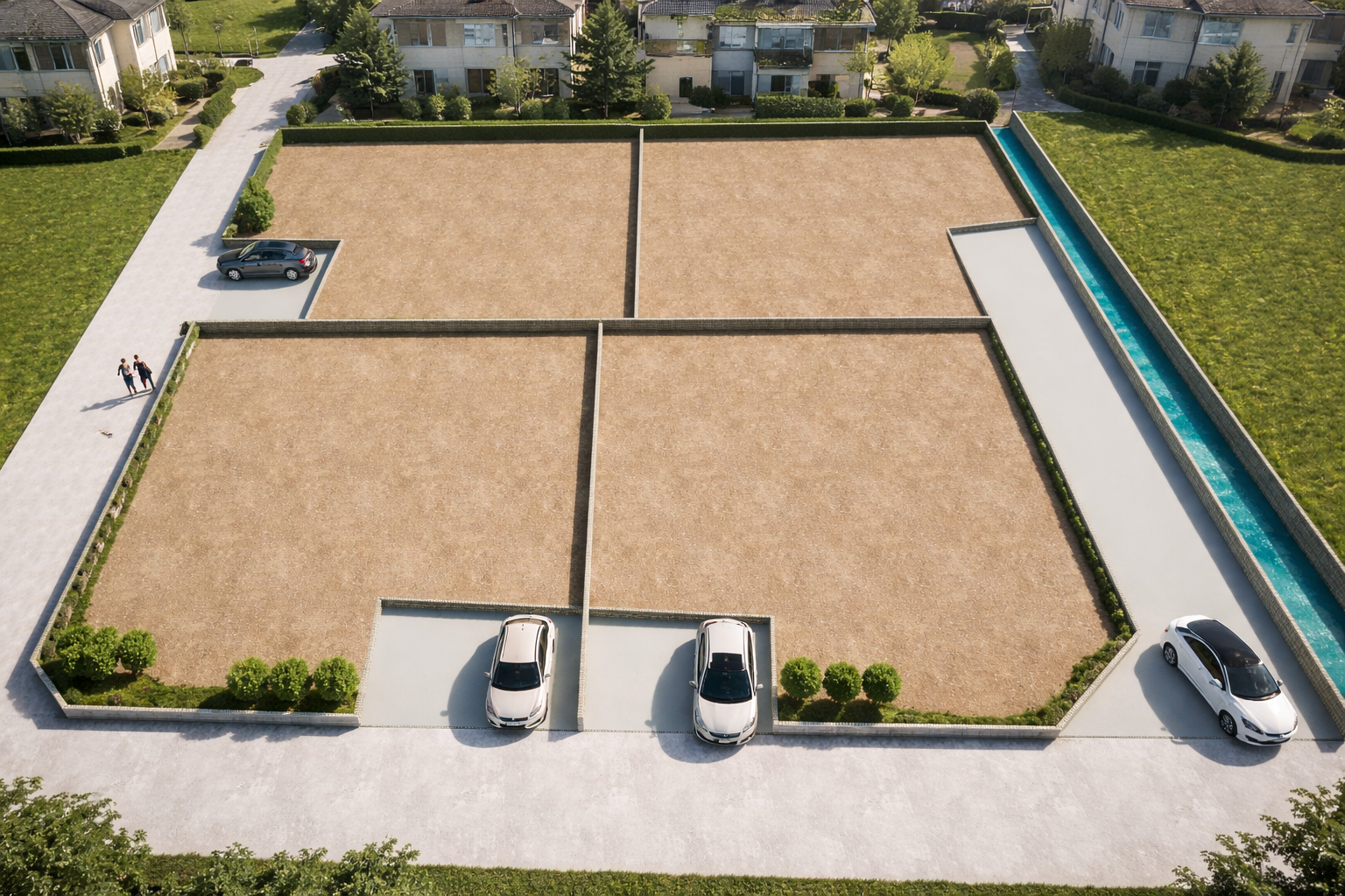 車の配置、各区画のゆとり、庭の取り方、周辺とのバランスまで、