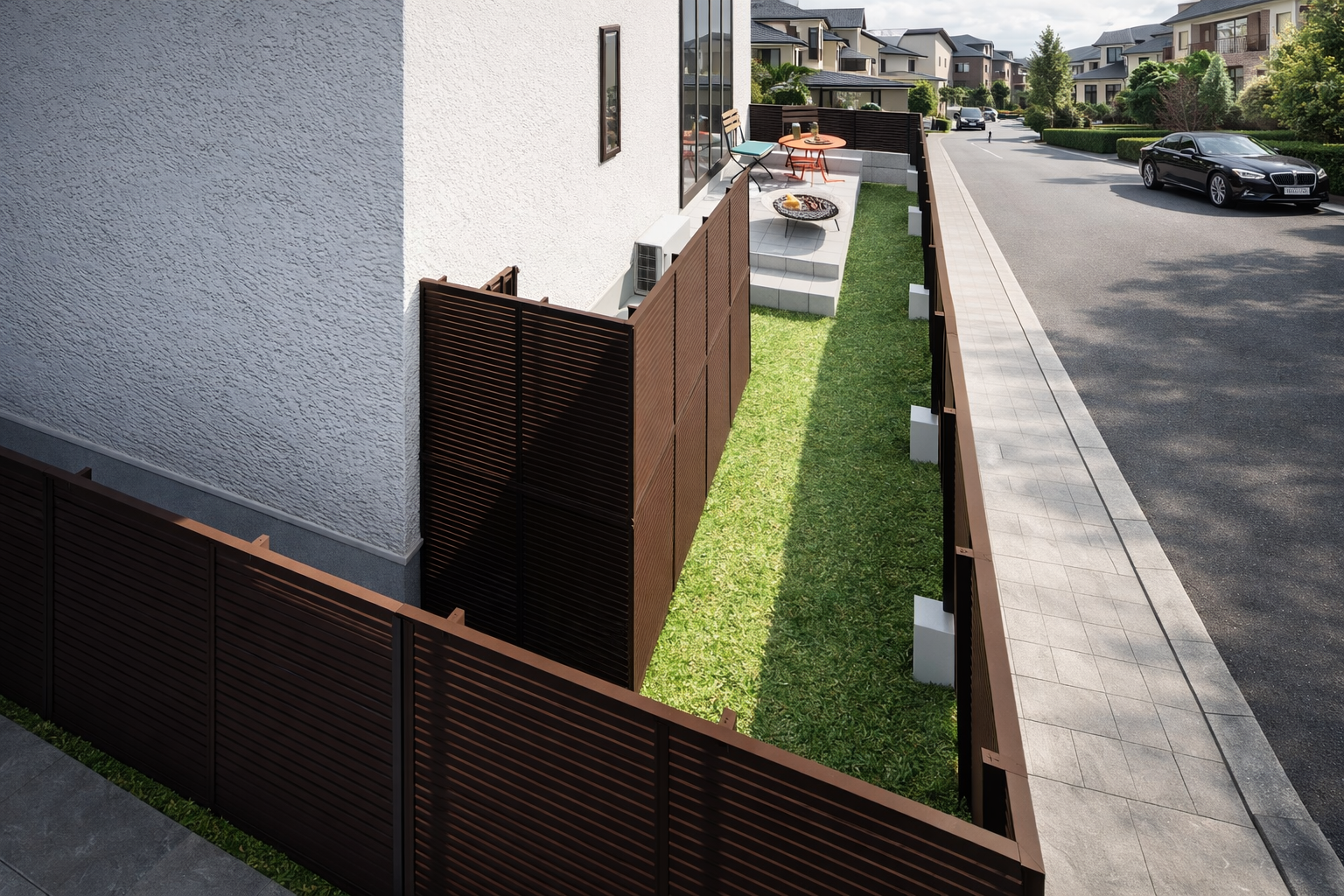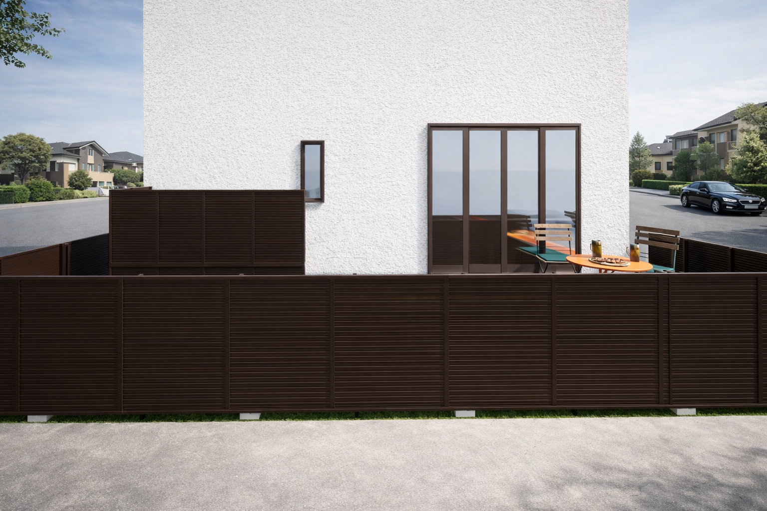今回のご提案では、建物まわりの外構を単に囲うだけでなく、プライバシーを確保しながら、