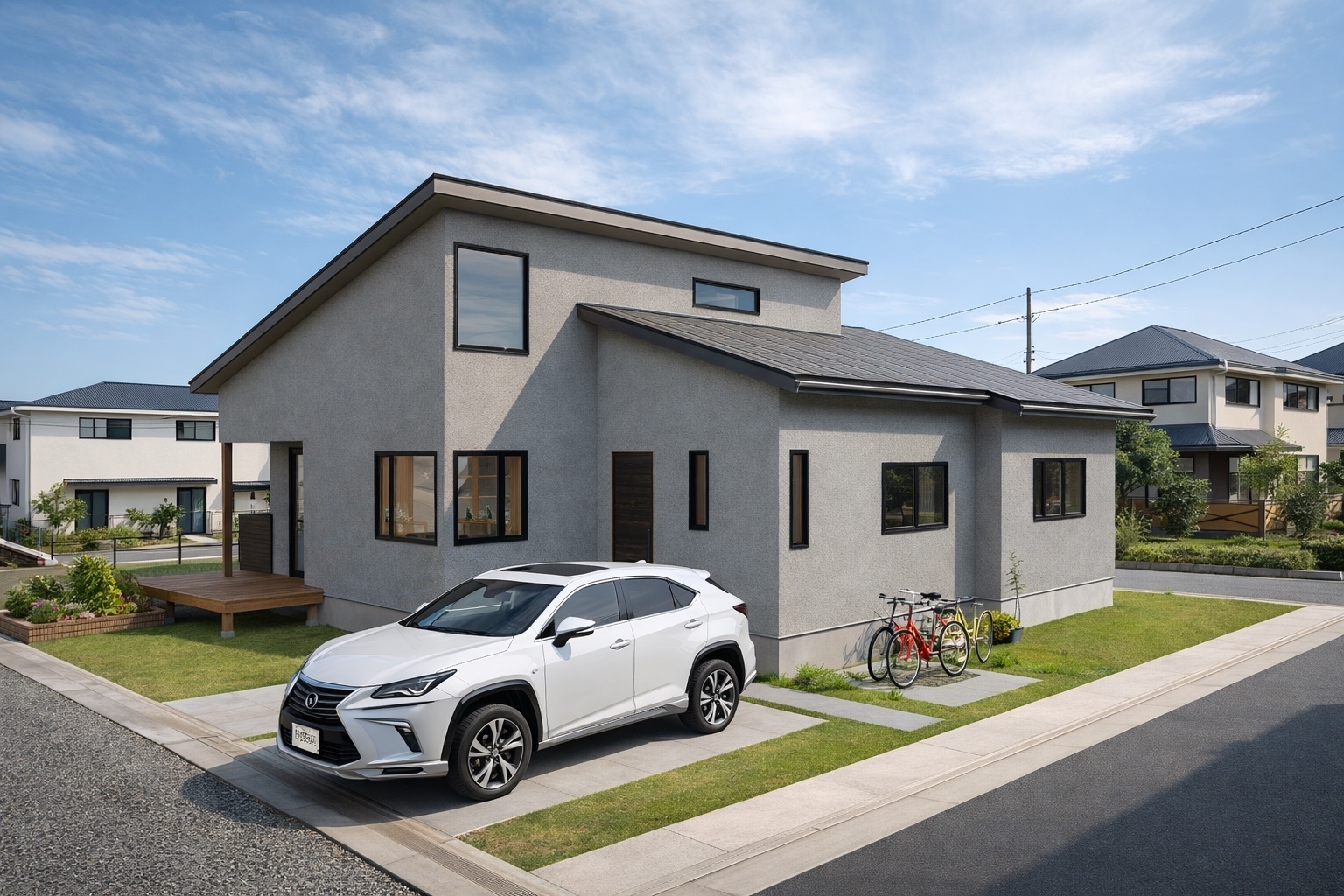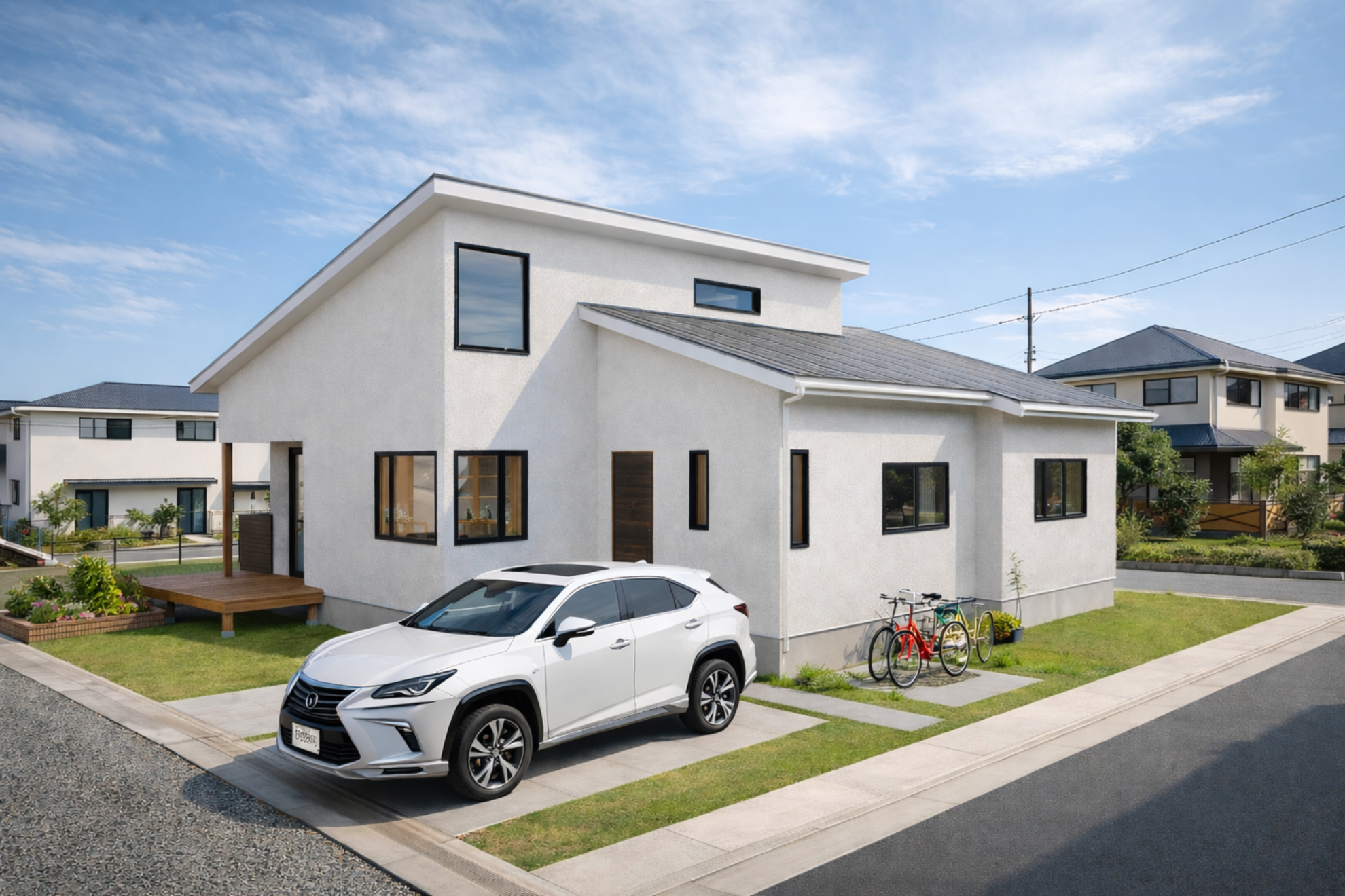 周辺の街並みに自然に馴染みながらも、住まいとしての個性をしっかり感じられる一邸に仕上げています。